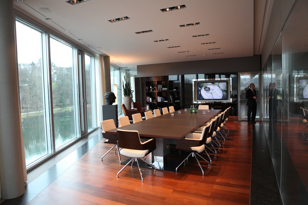 After the SIHH watch fair, we took the train from Geneva to the German speaking side of Switzerland to visit the offices and factory of watchmaker IWC. Located about an hour outside of Zurich, the town of Schaffhausen is a small enclave on the Rhine river that has become famous for high end watch manufacturing. The IWC headquarters look almost exactly as you would expect. The older part of the building was at one point merged with a perfectly modern, clean and stylish building expansion. The resulting structure is classic and modern all together in one piece. The interiors of the office are outfitted almost exclusively with USM Modular furniture, which made me feel like I was in a Star Destroyer, or at least a Nebulon-B frigate. What I’m trying to say is the place is pretty space aged and cool.