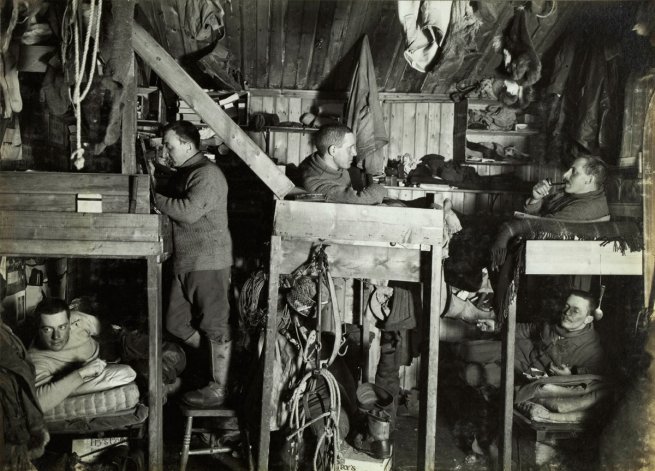 We started at 7:30, none of us having slept much after the shock of our discovery….; the wind is blowing hard, T. -21°F, and there is that curious damp, cold feeling in the air which chills one to the bone in no time…. Great God! This is an awful place and terrible enough for us to have laboured to it without the reward of priority. Well, it is something to have got here, and the wind may be our friend tomorrow. We have had a fat Polar hoosh [food in liquid form, typically made of lard, oatmeal, beef protein, vegetable protein, salt, and sugar] in spite of our chagrin, and feel comfortable inside–added a small stick of chocolate and the queer taste of a cigarette brought by Wilson. Now for the run home and a desperate struggle. I wonder if we can do it.