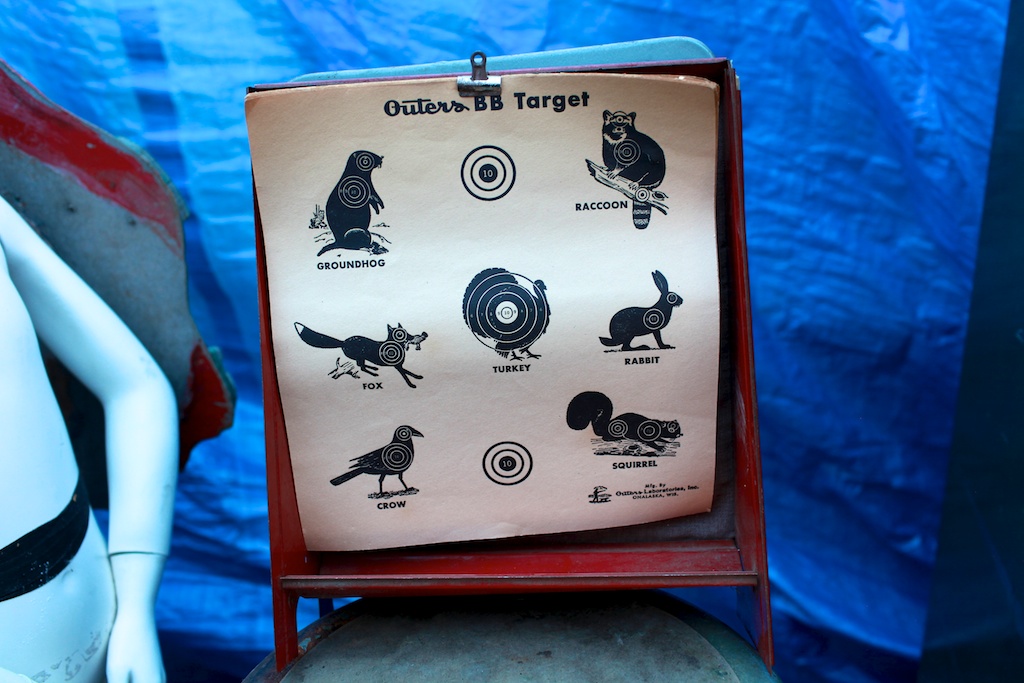 We only got spend one day shopping Brimfield, but there was a lot to see and document, so here’s round II of the photos. You’ll note a giant Westinghouse sign (that came close to coming home with our group), some classic ephemera, a BB gun target and a flock of Ralph Lauren folks plotting their takeover. Part I of our spring 2012 Brimfield adventure can be seen here.